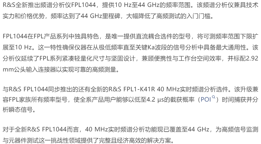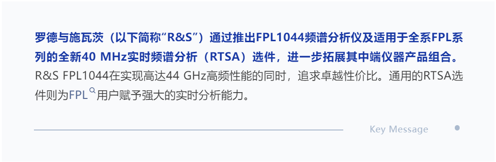 【新品上市】罗德与施瓦茨以全新44 GHz FPL频谱分析仪及40 MHz实时分析功能重塑中端市场格局